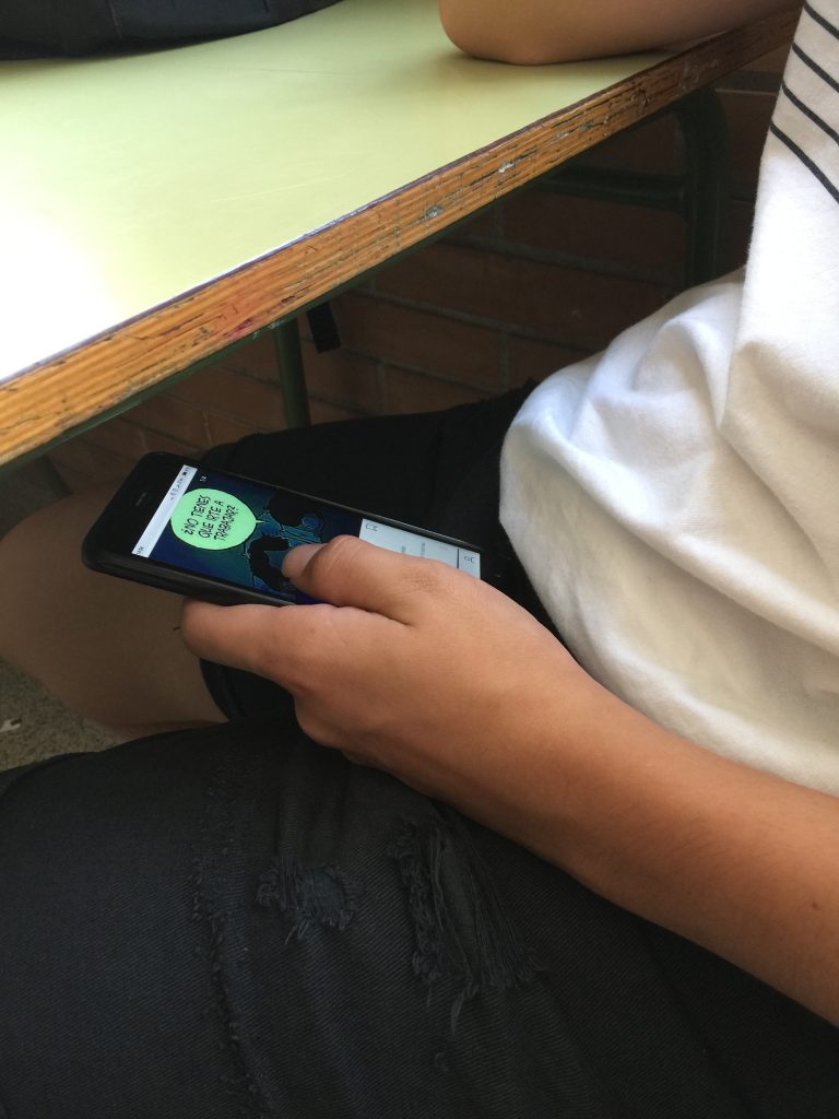 Per part dels alumnes, ús del mòbil, els dona igual aquesta nova norma ja que casi tots els utilitzen en hores de classe, encara que veuen que no esta bé, també molts es consideren adictes al mòbil ja que no poden estar més d’una hora sense mirar-ho.