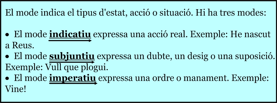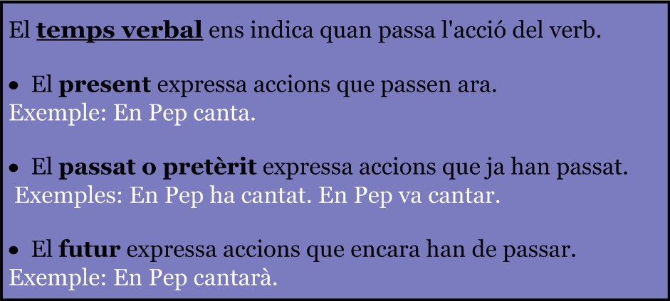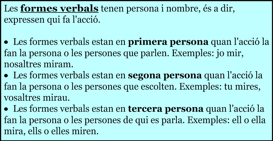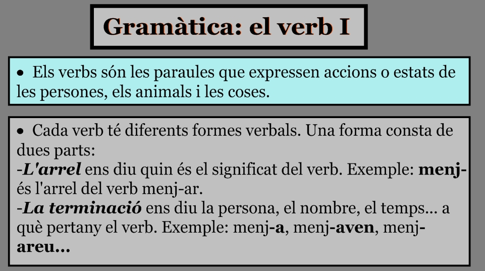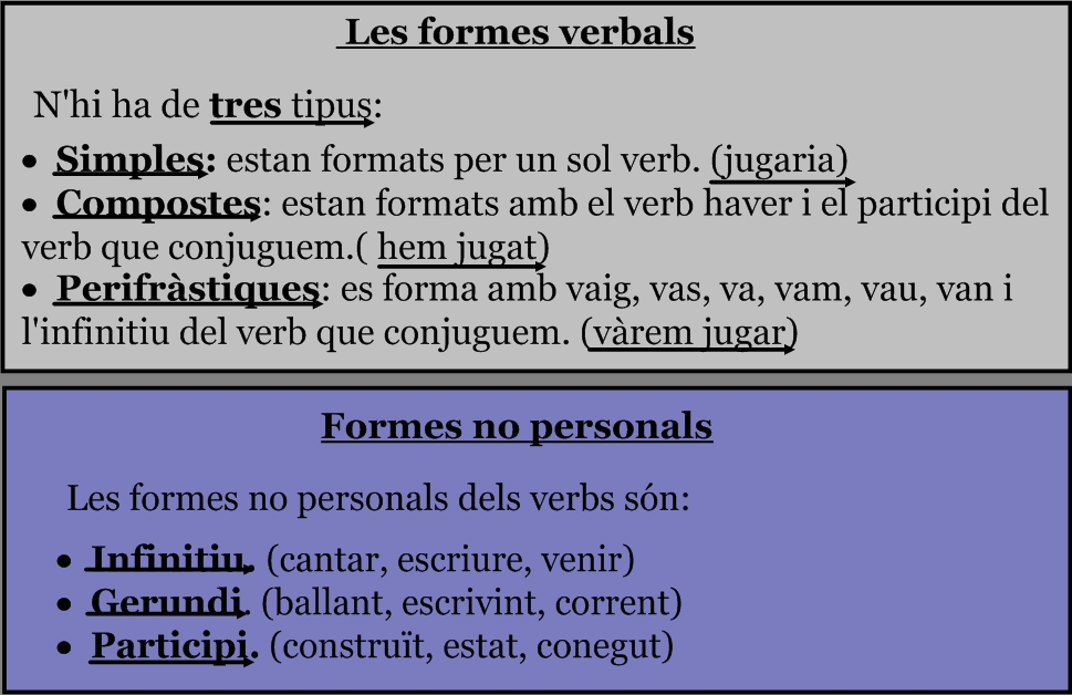Avui hem treballat el verb a l’aula (conjugacions, el mode, les formes verbals, les formes no personals i el temps verbal).