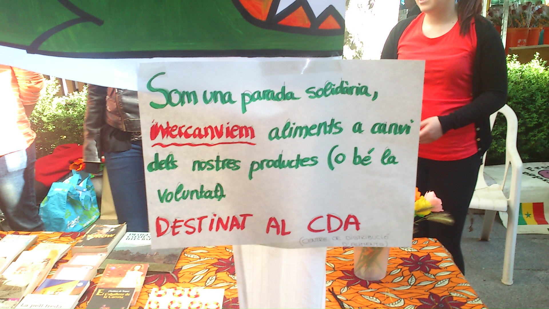 Es tractava d’intercanviar roses (produïdes manualment) i llibres (de segona mà) per productes alimentaris.