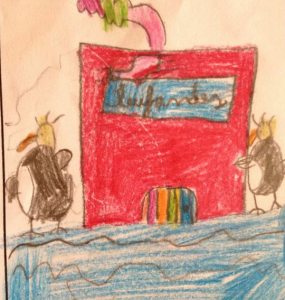 Els pingüins del Pol Nord fabriquen les seves bufandes per protegir-se del fred. Les bufandes són de llana artificial de colorins. A la fàbrica on es fan les bufandes  els pingüins protegeixen els seus peus amb mitjons blanc i negres, que fan conjunt amb el seu cos!
