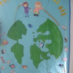 4t: Netegem un altre cop el pot de iogurt i fem les tres parts de farina.