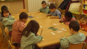 Passem llista!! cada setmana hi ha dos nens/es encarragats/des de saludar als infants que han vingut a l’escola, amb l’ajuda del trenet que té els vagons del mateix color que les taules de la classe. Els nens/es que no vénen aquell dia els posem a la caseta i així diferenciem més clar qui ha vingut i qui no. Després comptem els nombre d’infants que no ha vingut i apuntem el seu nom a la pissarra.