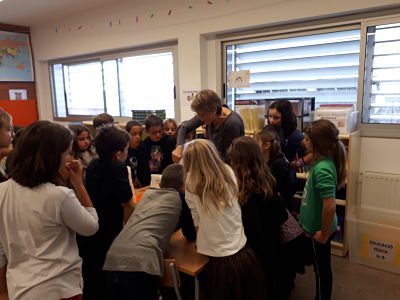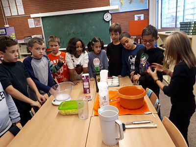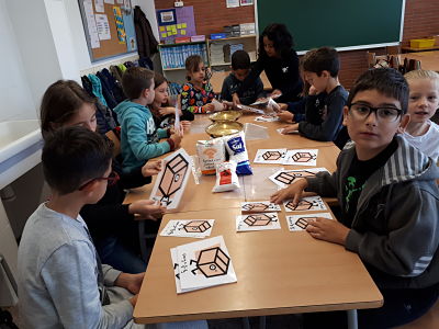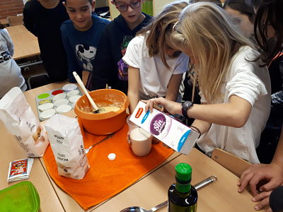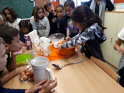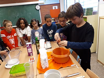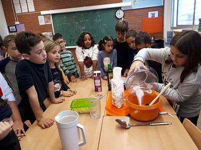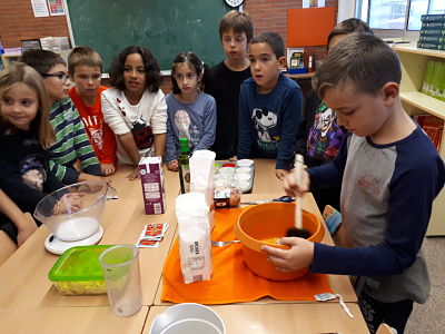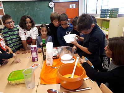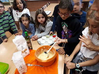 Comencem les mesures de massa fent magdalenes de tardor amb poma. Continuem pesant productes de la botigueta i fem un joc per buscar equivalències entre els quilos i els grams.