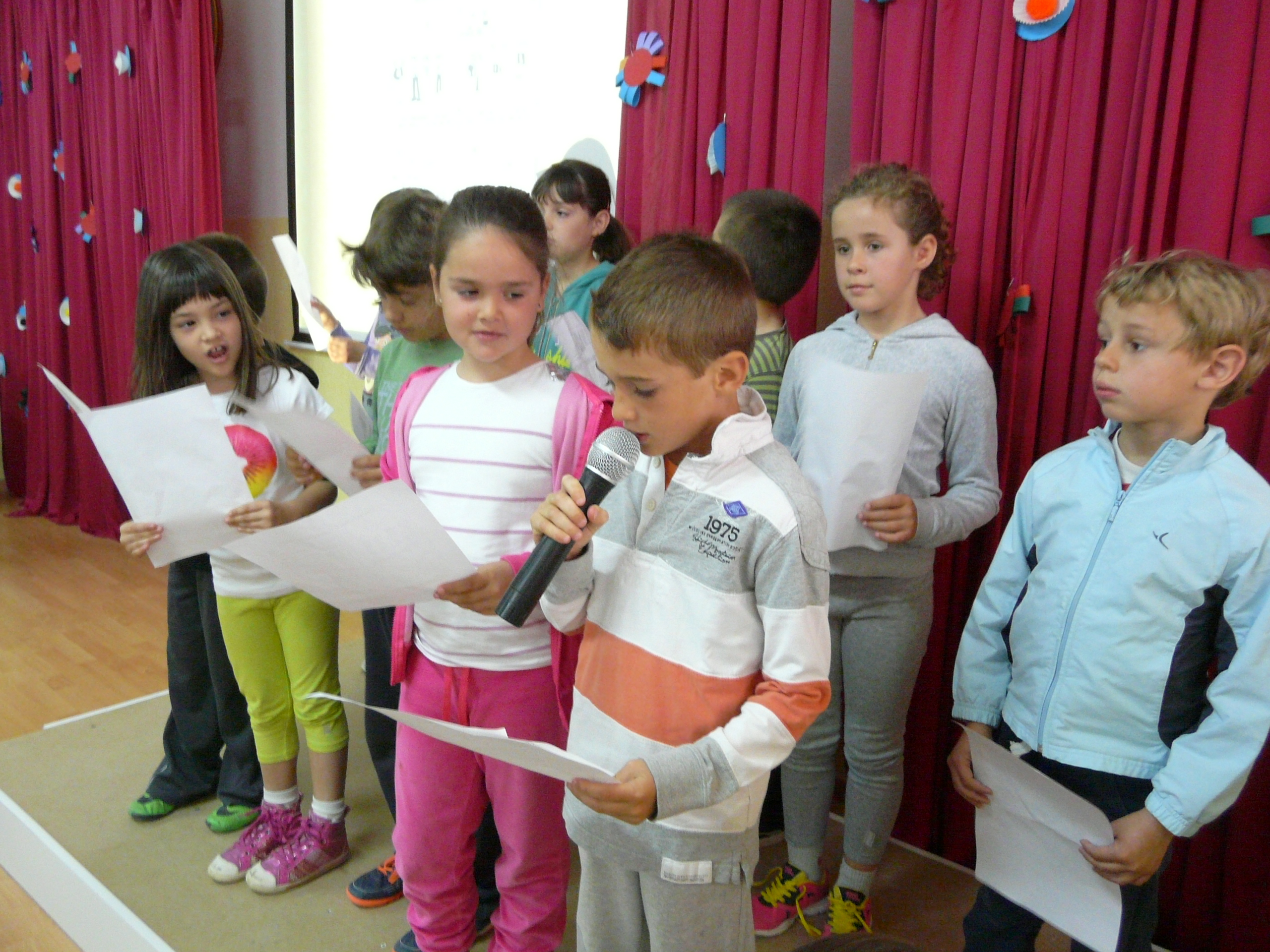 Avui, durant tot el matí hem fet els Jocs Florals i hem pogut escoltar algunes de les noves creacions literàries que han fet aquest any els nens i les nenes de l’escola. Podreu gaudir llegint-les a la revista que hem fet i que rebreu a casa durant aquests dies. També la podeu veure des del nostre bloc a través del següent enllaç:
