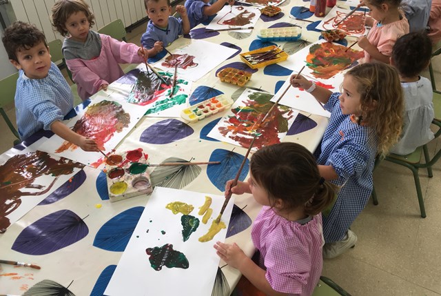 Hem pintat amb pintura a l’aula de plàstica amb colors de tardor: