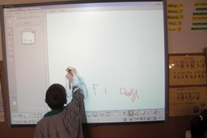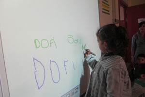 També vam utilitzar la pissarra digital per mirar videos, fer jocs i activitats i escriure paraules relacionades amb els dofins.