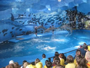 El curs passat vam anar al Zoo de Barcelona i ens van agradar molt els dofins. Aquesta és una foto del dia que hi vam anar. Aquests que veieu d’esquena som alguns de nosaltres.