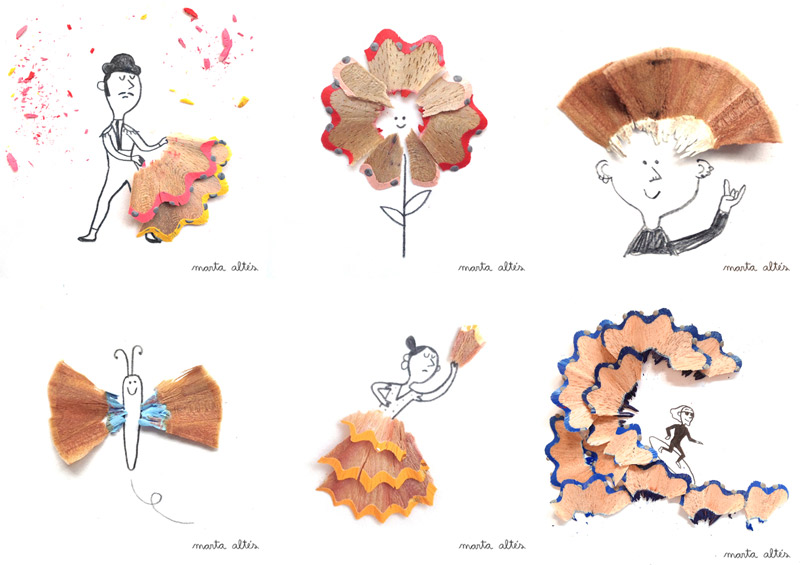 Fent honor al títol d’aquest bloc la primera entrada a aquesta pàgina està dedicada a diferents creacions que es poden fer amb encenalls de llapis de colors. Animeu-vos a provar-ho.