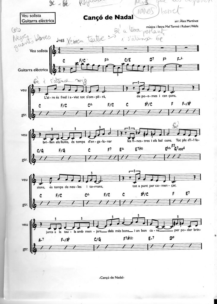 Aquí us deixo la base instrumental amb la versió que farem nosaltres de la Dàmaris G. i també la partitura amb la lletra.