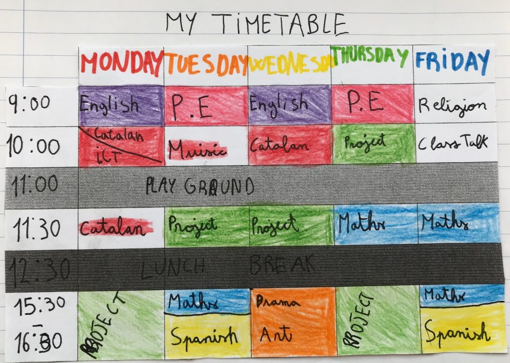 We learned about the times and subjects and we made our timetable in English! We also created a craft in order to know how to make sentences!