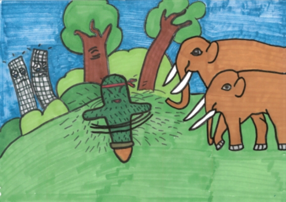While the monuments are thinking how to come back to the present, wild animals appear to attack them.