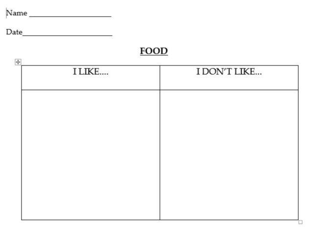 Si en la Task 1 vau dibuixar els aliments, també els podeu anar agafant i dient si us agrada o no. Com us sigui més fàcil.