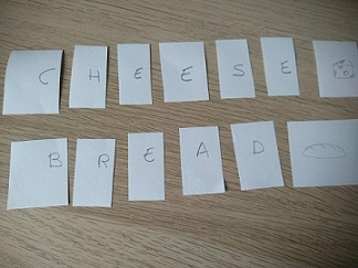 - Si teniu segells de lletres, podeu practicar els noms del menjar.