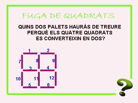 enigma del cuadrat de treure 2 palets.. es quedara en nomes 2 cuadrats.