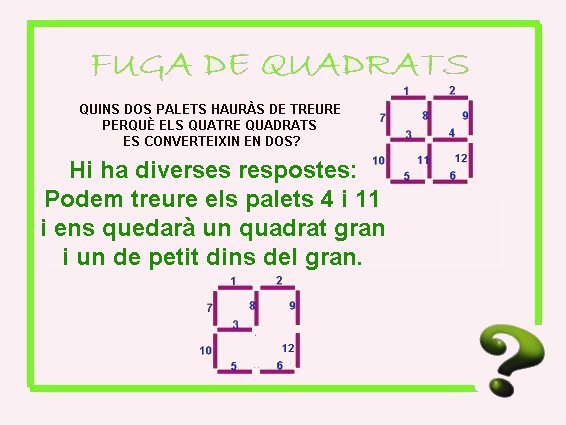 enigma del cuadrat de treure 2 palets.. es quedara en nomes 2 cuadrats.