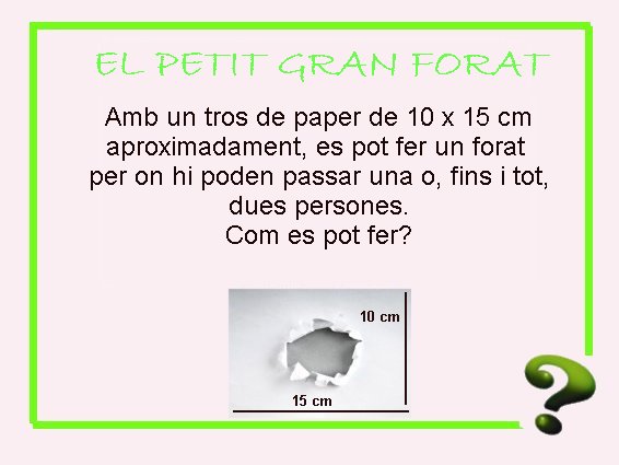3. Podria ser que 10 x 15 sigui el paper doplegat varies vegades, si fem el forat amb el paper doplegat i despres el despleguem, quedarà un forat gran.