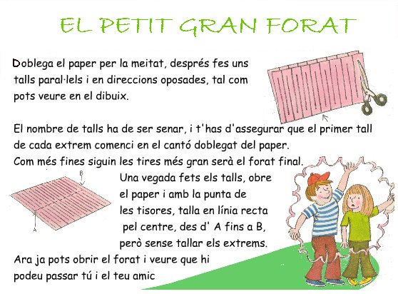 Enviem una pista perquè sembla que ningú s’anima a donar una resposta. Heu de doblegar el paper i fer servir unes estisores. Segur que alguna vegada heu provat de fer una pinta amb paper. Què faríeu? Doncs feu una pinta a una banda i altra del paper doblegat. Us ha sortit un gran forat?