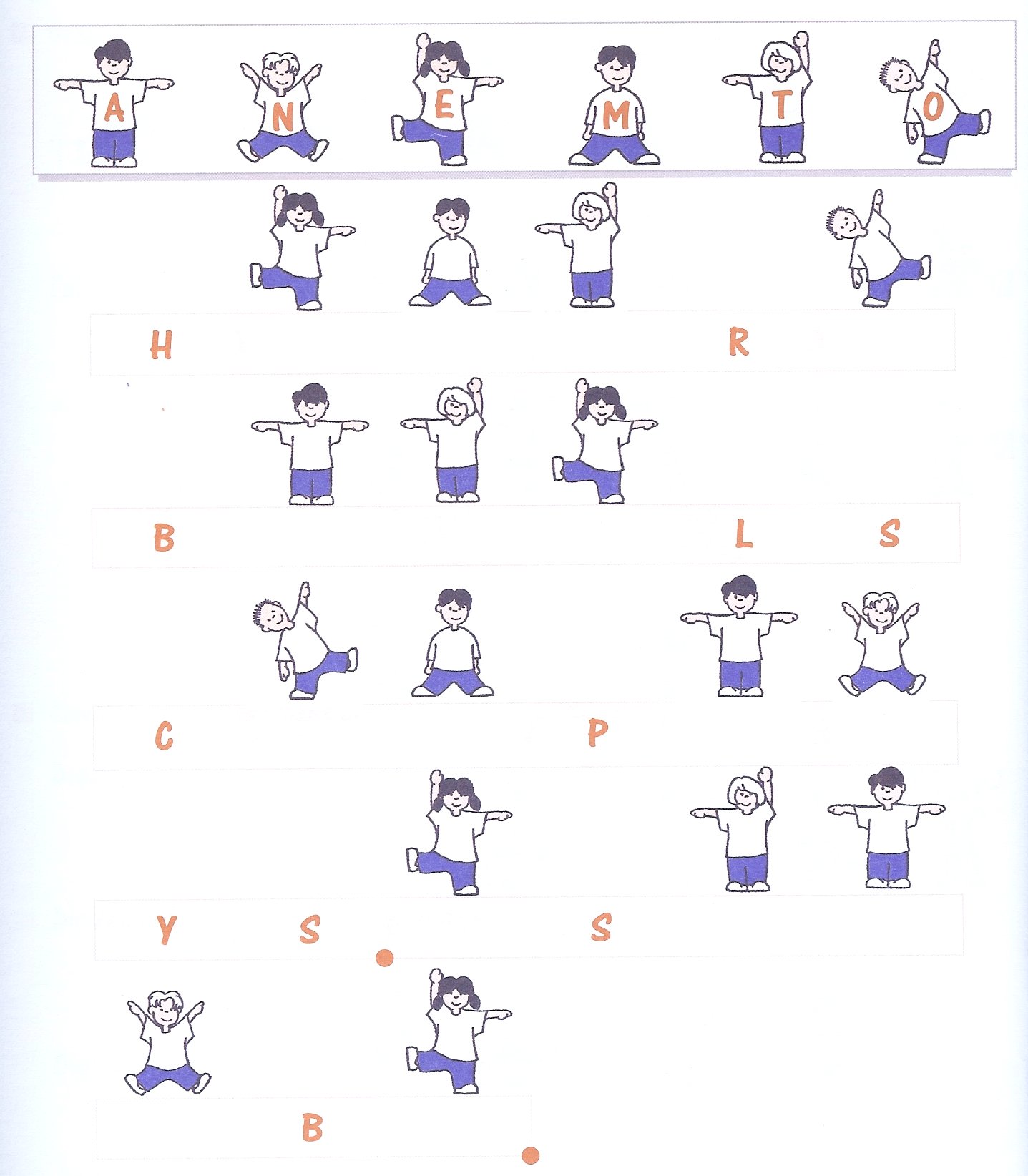 1.L.04 El missatge ocult 1 de juny de 2015Inicial, LògicsCRP del Gironès Enigma lògic Inicial Els nens i les nens de P5 tenen un missatge molt complicat de desxifrar. Completa les lletres que hi falten mirant la seva equivalència segons la posició del cos de cada nen i nena. Font de l’enigma APDI,2. Editorial icce