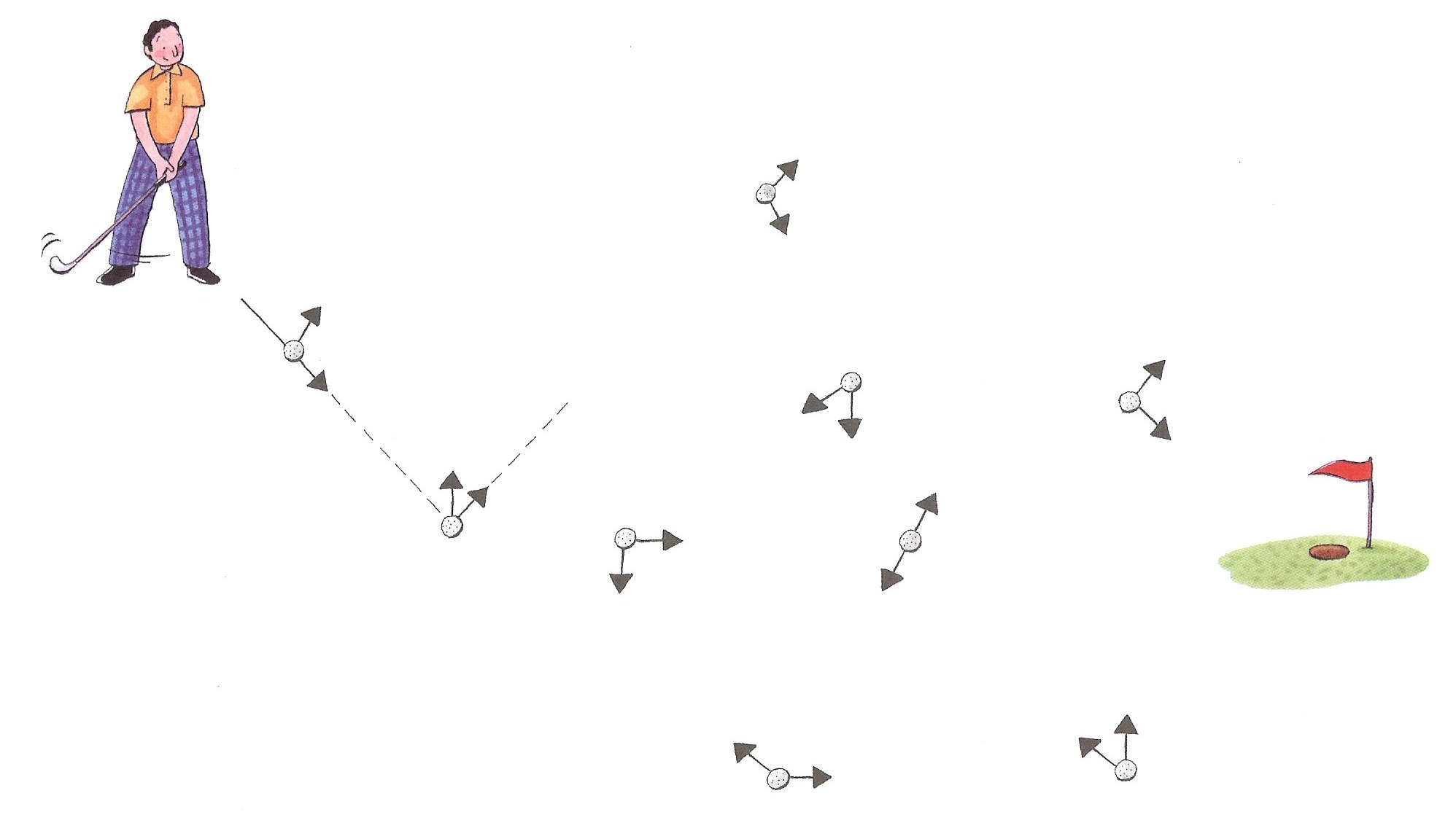 - Podries marcar el recorregut més curt que ha de fer la pilota de golf per entrar al forat? Has de respectar la direcció que marquen les fletxes.