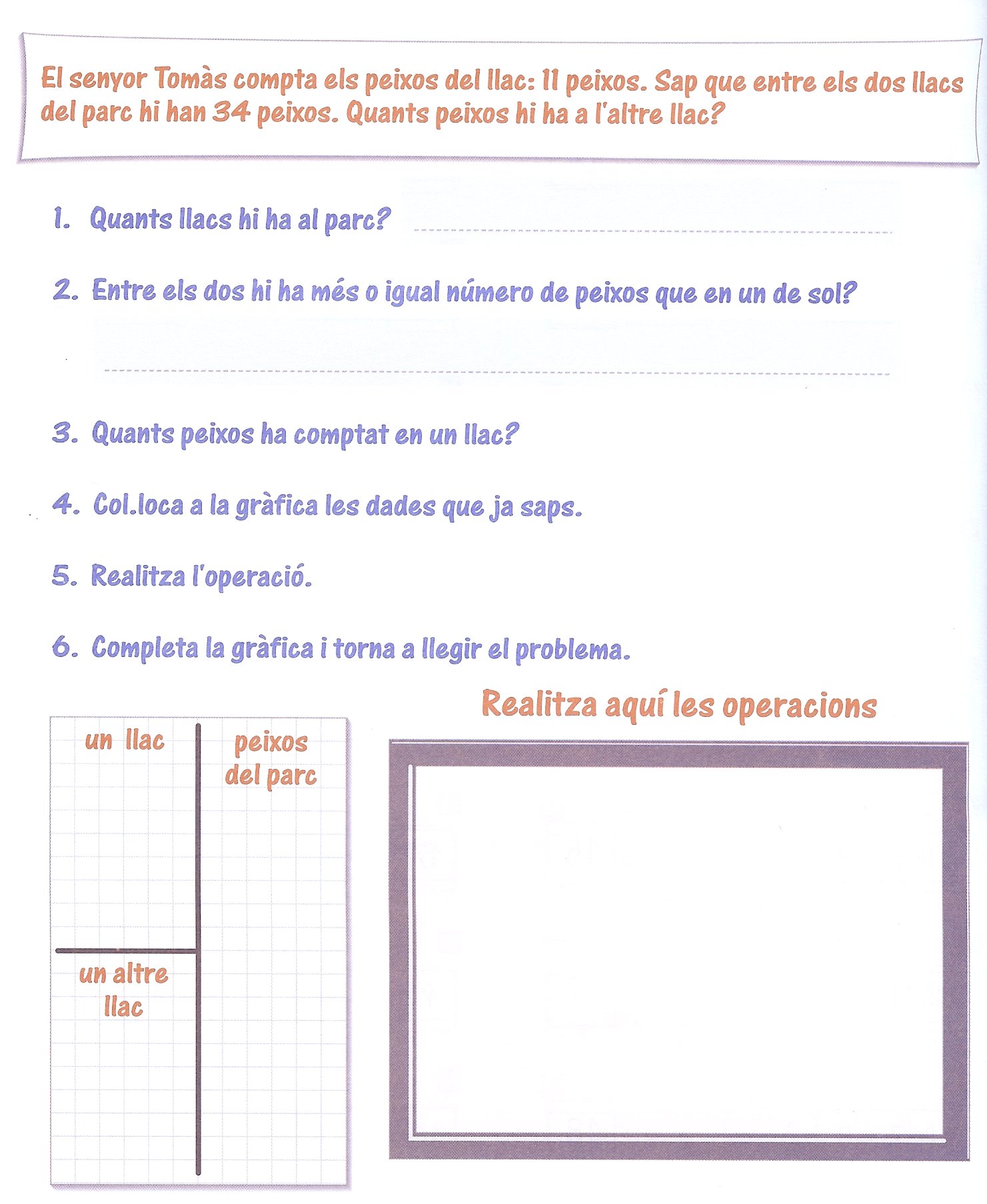 2.N.04 Els peixos dels llacs 1 de juny de 2015Mitjà, NumèricsCRP del Gironès Enigma numèric Mitjà El senyor Tomàs compta els peixos de dos llacs. Al primer llac hi ha 11 peixos. Sap que entre tots dos llacs hi ha 34 peixos en total. Quants peixos hi ha a l’altre llac? Font de l’enigma APDI, 2. Editorial icce