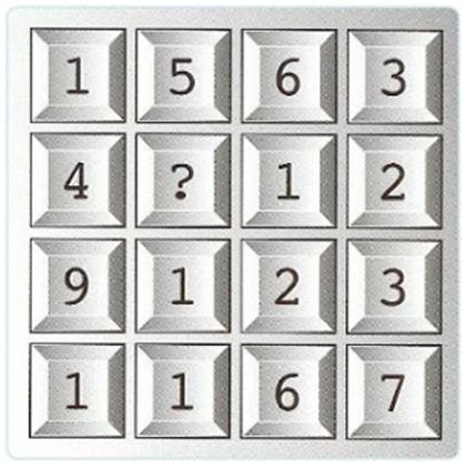 A la següent imatge trobem un panel amb una sèrie de nombres. En una de les caselles s’ha substituït un dels nombres pel següent signe “?”.