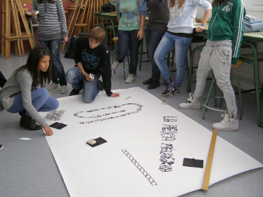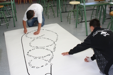 En un segon moment, distribueixen aquestes fases sobre imatges o objectes de l’aula creant així nous sentits o ressonàncies per les paraules.