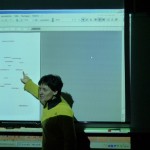 La Isabel ens ha fet veure diferents tractaments del text que podem utilitzar per donar forma al nostre text, el que acompanyarà la figura carregada que hem escollit: personalitat i caràcter per escollir la manera de col•locar-lo dins del foli. Entenen el foli com aquell espai on tot és possible, des d’un cal•ligrama a una “superhistòria”.