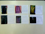 Quan hem mirat les imatges de les figuretes que hem pintat a la sessió anterior ens hem adonat, per exemple, que no estem molt acostumats a pintar figures tridimensionals o que fem servir molt el negre per definir els ulls… També hem vist com es reflecteix la personalitat de cada un de nosaltres en la miniatura.