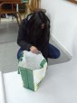 A la imatge hi ha un nen asiàtic d’uns quatre anys que és al supermercat amb una cistella de la compra. S’ha perdut, està mirant entre la gent a veure si troba la seva mare, té molta por perquè està sol i a fora fa fred, ja que és hivern. Està molt cansat perquè porta molt de pes i les seves mans no poden sostenir tota la cistella.