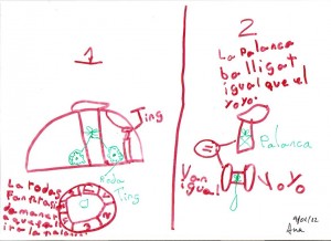 amb bata blava, com de botiguer d'adrogueria o ferreteria, tacada lleument amb tèmpera groga, o vermella, butxaques sense fons, o si voleu com em veié el Carles, el meu millor mestreinfant