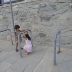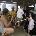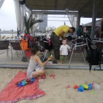 Hem repetit el lloc, però avui el dia no era tan calurós i no ens hem acostat a l’aigua. La Jana i l’Anna han estat una bona estona passant-se la pilota i fent carreres agafades de la mà. Fins que ha arribat l’Eloi i han parat de córrer per quedar-se a prop seu jugant amb la sorra i degustant un suc de taronja que ens ha costat 5 euracos!!! El pròxim dia el portarem exprimit de casa…