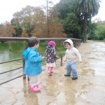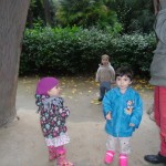 Dia de pluja, així que comencem la trobada dins la ludoteca de la Ciutadella. Allà aprofitem per carregar forces amb l’esmorzar que ens ha portat el Max per celebrar el seu segon aniversari. Tot i que segueix plovent, els petits decideixen sortir a l’exterior i anem a fer una excursió fins al mamut. Després de saludar els ànecs del llac i de fer “xip-xap” als bassals acabem el matí jugant a fet i amagar.