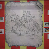 A la nostra escola quan ve Sant Jordi la decorem amb dibuixos. Aquest any cada classe de cicle superior hem fet un dibuix d’un drac, una princesa i un Sant Jordi. Després els hem enganxat pels passadissos. Ara tota l’escola està votant els millors. El dia de Sant Jordi els tres que guanyin els posarem a l’entrada de l’escola.