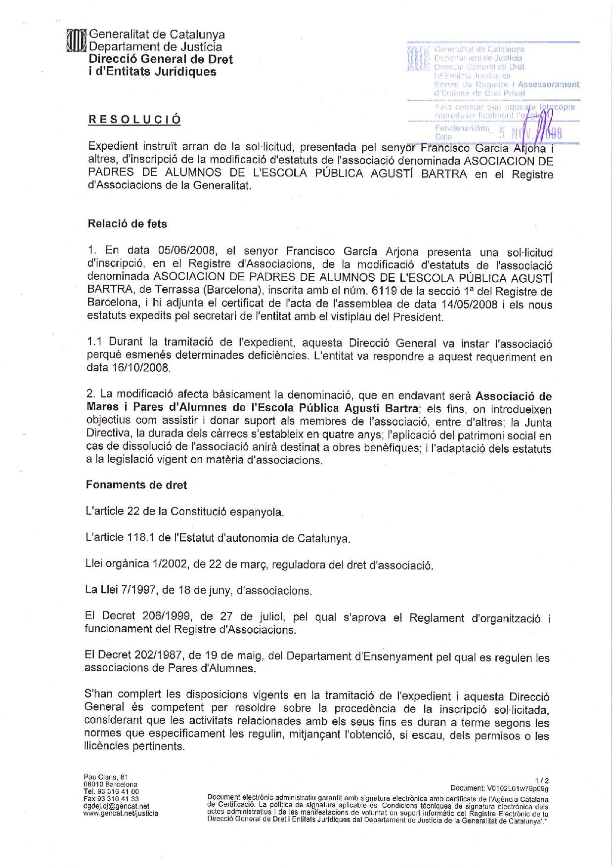 Ja tenim els Estatuts.