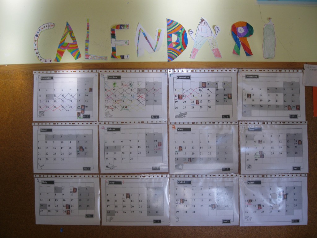 A Cicle Inicial hem fet una feina per organitzar-nos: per treballar els dies de la setmana, els mesos, els aniversaris de mestres i alumnat: hem fet un calendari!!!