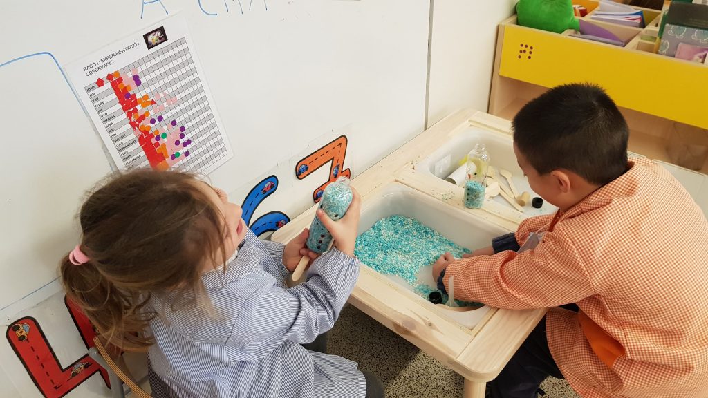 Seguim treballant amb racons. Aquest cop tenim el racó de la tablet on treballem l’hivern, el racó de construccions amb les peces que ens van portar els reis, el racó de pintura on dibuixem paisatges d’hivern, el racó de jocs de taula amb el rumikub que també ens el van portar els reis, el racó d’experimentació on vam tenyir arròs blau i poden fer transvasaments,el racó de matemàtiques amb el tangram, el racó de llengua on han de posar la paraula del barret que coincideixi amb el dibuix que té el ninot de neu a la panxa, el racó de grafisme on fem lletres amb sorra i el racó de plàstica on retallem i enganxem el nostre ninot de neu.