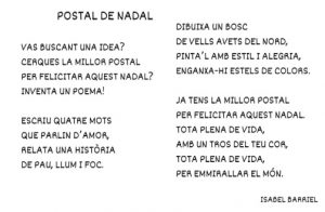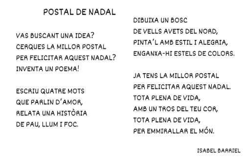 Us deixem una foto de la felicitació perquè la pugueu veure, i també el poema de Nadal per si el voleu practicar a casa.