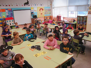 Els alumnes i les alumnes de P3, P4 i P5 estaven molt bonics i boniques disfressats de castanyers i castanyeres.