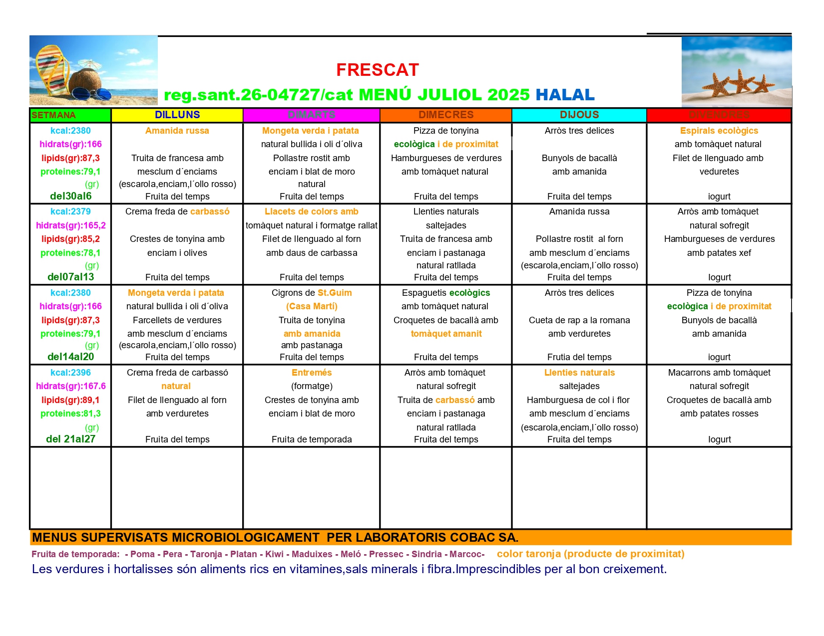Menú JULIOL025HALAL.Llar d´infants_page-0001 Publicat el 20 de juny de 2025 amb 1650 × 1275 a Menjador
