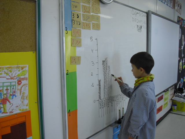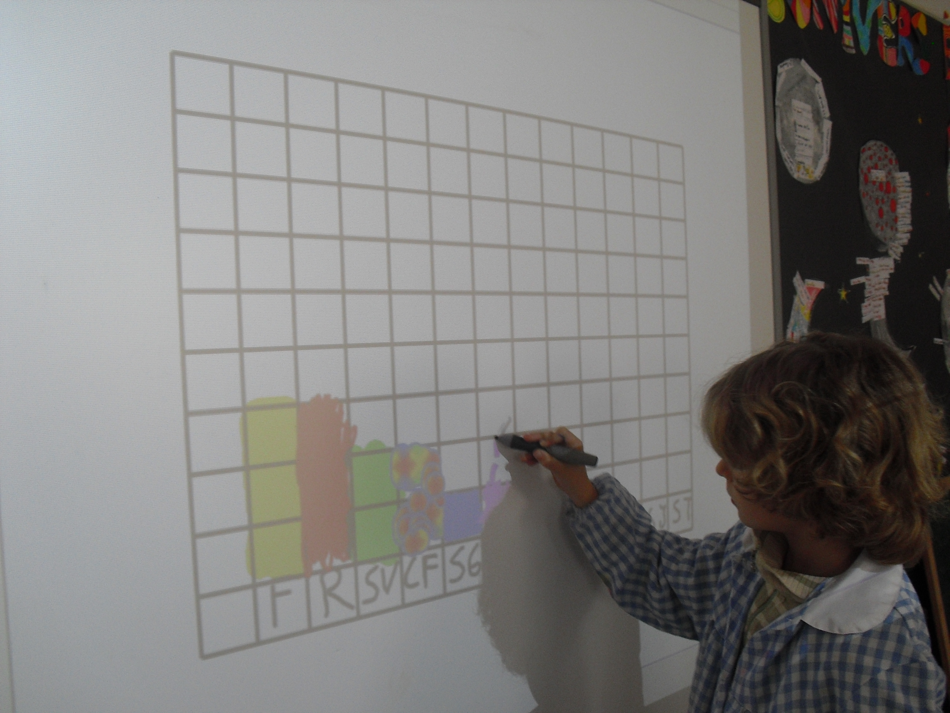 A la pissarra digital fem una gràfica dels llocs on treballen els pares i les mares de les fures i les víbries.