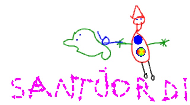 - Utilitzarem la pissarra digital per fer dibuixos sobre Sant Jordi. Aquest recurs els agrada molt perquè poden utilitzar diferents tècniques i colors. És una manera d’expressar com han viscut aquesta festa.