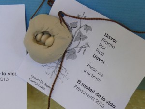 Els nens i les nenes de quart, que ja sabeu són els jardiners i jardineres de l’escola, han preparat per a tots nosaltres aquest bonic niu de fang amb tres llavors.
