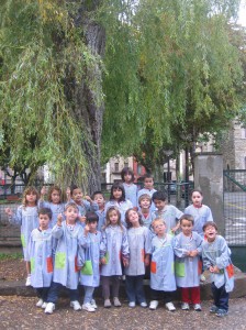 Aquest any fem francès, tenim un ordinador i esmorzem al pati; per jugar podem anar per tot el pati.