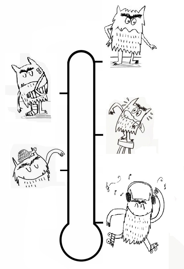 Sinó pots pintar tu mateix un termòmetre d’emocions amb el monstre de colors. Amb una pinça d’estendre la roba, col·loca-la cada dia a l’emoció que sents.