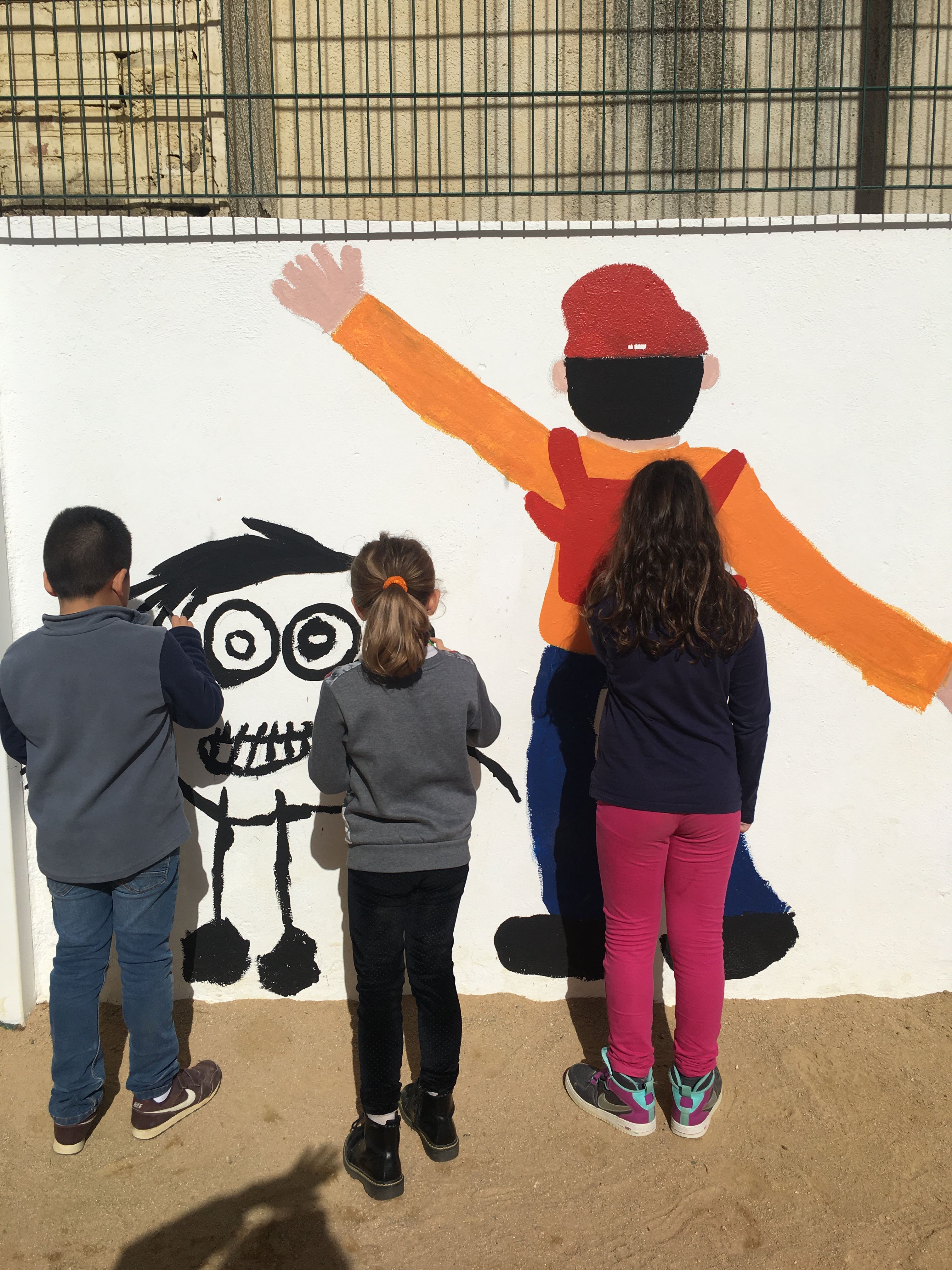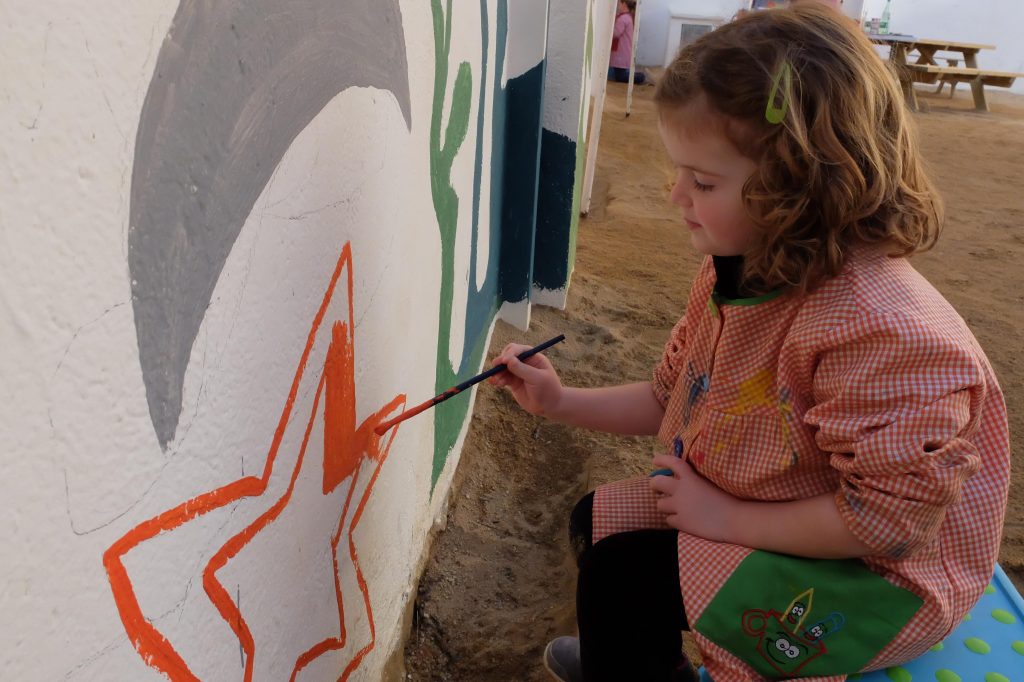 Aquest mes de març tots els alumnes de l’escola El Dofí, les mestres i personal de menjador hem gaudit pintant el pati.