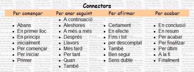Finalment, aquí tens alguns connectors que t’ajudaran a unir les frases.