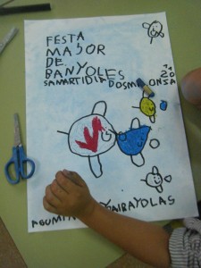 - Decorem l’entrada del parvulari amb un mural dels gegants i capgrossos i amb el cartell de la festa major.