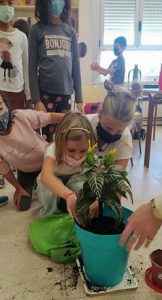 Les nenes i els nens de cicle inicial durant aquest primer trimestre hem estat cuidant d’una planteta que tenim a classe. La vam haver de trasplantar perquè no tenia prou espai per créixer.