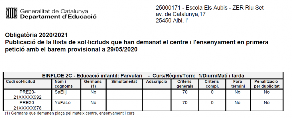 BAREM PROVISIONAL DE PREINSCRIPCIONS