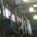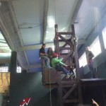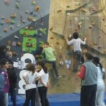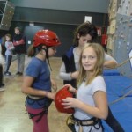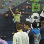 Segon, entrar a les instal·lacions i deixar les bosses. Aquí s’ha tingut el primer contacte i les primeres emocions (quin rocòdrom; fins allà dalt s’ha de pujar? Jo no puc, és massa!; quina passada!, etc.)